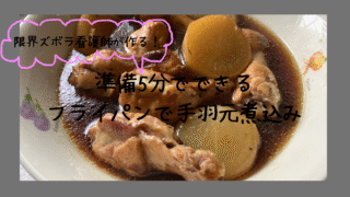 夜勤明けごはん 【準備5分】夜勤明けの疲れた体にしみる。フライパンで煮込むだけ!手羽元の煮込み